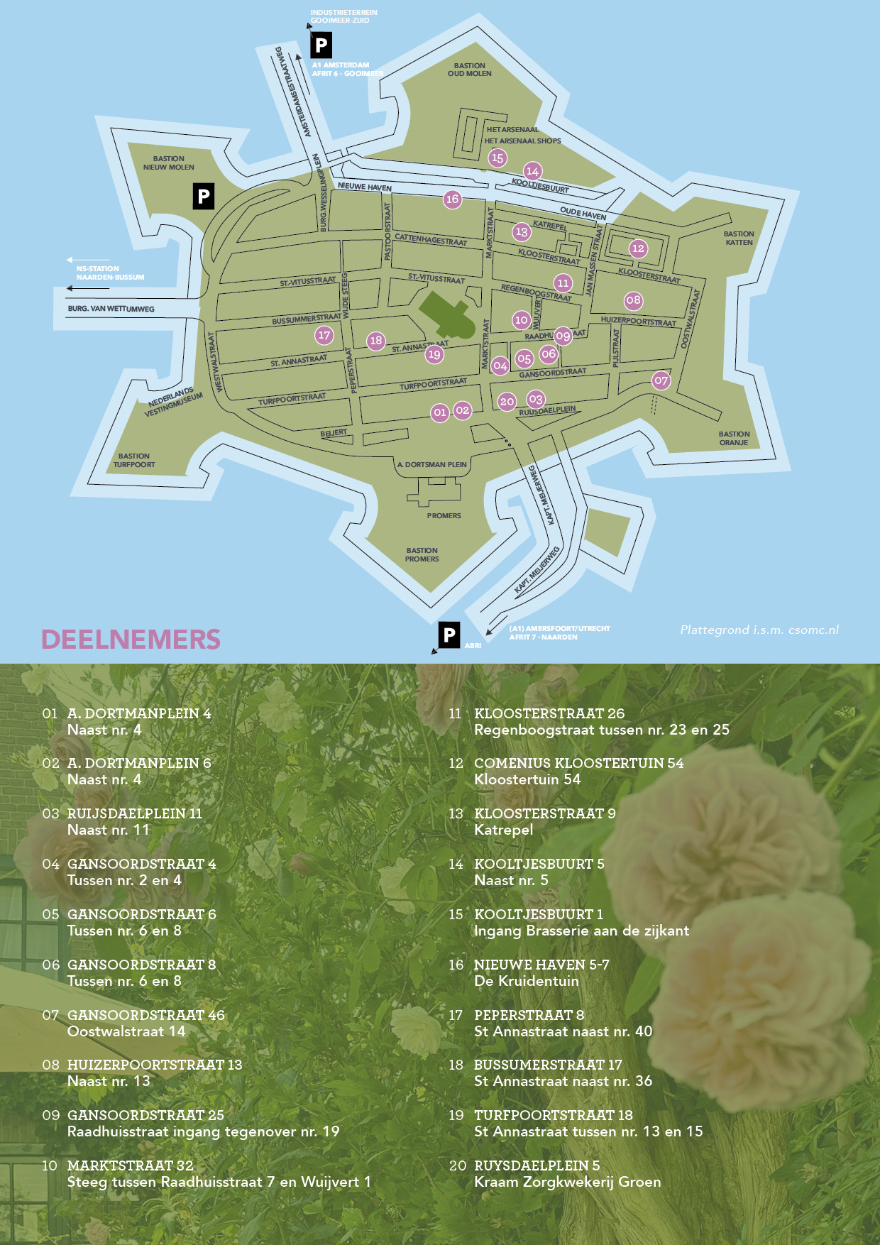 U kunt zich voor de routebeschrijving melden bij het bezoekerscentrum of bij de ‘achterom’ tussen huisnummer 21 en 23 beide aan het Ruijsdaelplein. Tevens is er een startpunt in de steeg St. Annastraat, in de steeg naast no. 40.
